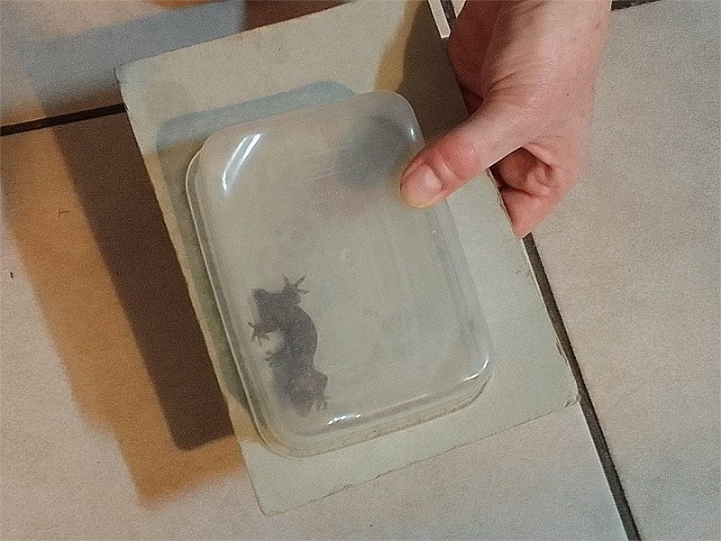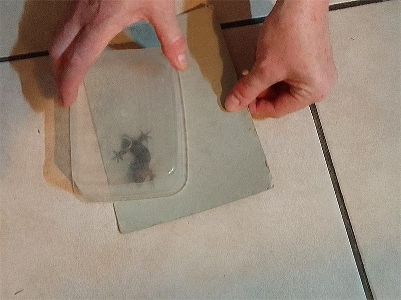 This method also works fairly well for frogs, toads, geckos and bugs, although sometimes they can be a bit harder to get into the box. In this case one may have to place the box over the critter, and then gently and carefully slide the piece of cardboard under it, going very slowly, so as not to hurt the poor beastie! Keep the box closed with the cardboard until the frog, toad, gecko, bug or what-have-you can be released in a suitable place.
